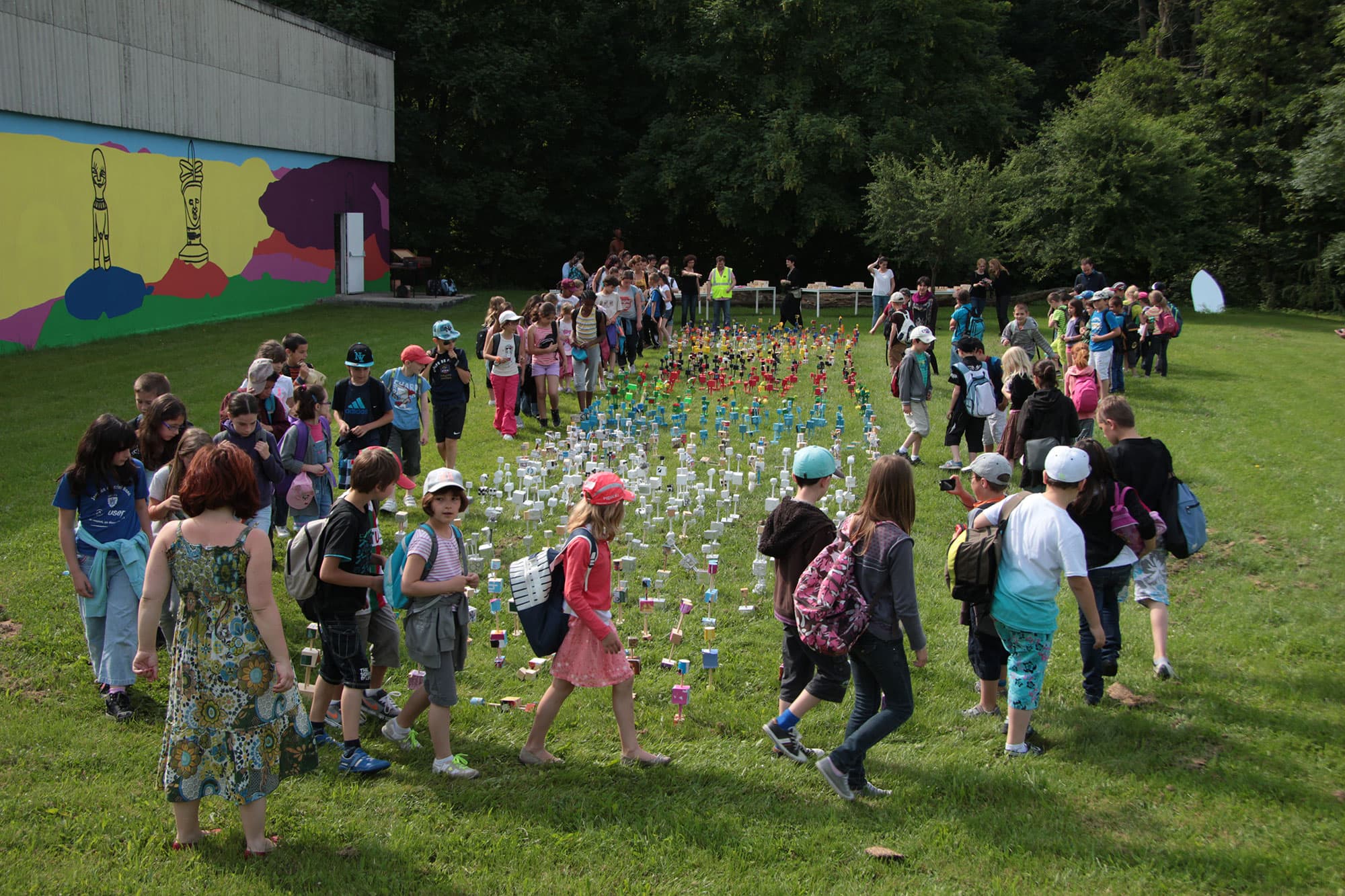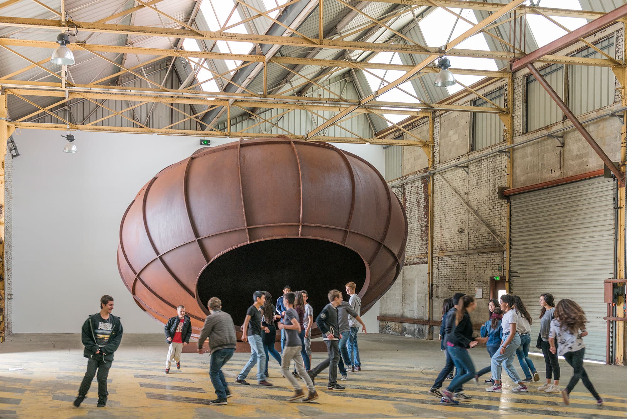 There have been many initiatives with that objective, directed towards diverse audiences. The quality of our spaces, the industrial architecture, the wild flowers and the monumental artworks allow our public to let go, and no longer feel like a visitor but rather simply like a human being. ContinuActions are a holistic experience: our cultural mediators openly guide the public through the spaces, taking into account the individuals they are dealing with. School visits are organized together with teachers based on the specific needs of the children, and every visit is unique. ContinuActions are all about providing quality education that transform a simple guided visit into an experience to be lived. Similarly, ART & FUTUR Ex-Ex: Expérience Expo proposes exhibitions and workshops dedicated to children. ART & FUTUR thus constitutes a space for research on cultural mediation through constant and diversified experimentations. There are many projects that situate the gallery in its surrounding territory. Les Moulins has a large number of partnerships with associations and cultural institutions hosting concerts, plays, dance performances, and many other activities. The Continua Skatepark is a true architectural gesture in the landscape surrounding Le Moulin de Sainte-Marie that opens up the gallery to new experiences. The Sensory Walk, set up between Le Moulin de Boissy and Le Moulin de Sainte-Marie, is made up of several installations narrating the industrial history of the mills. The route thus becomes a meeting point between the past and the present. All of these activities and choices aim to create links between the gallery and its area, and between art and life, generating both singular discoveries and vivid memories.