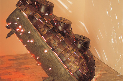 Chen Zhen - Zen Garden 2000, Alabaster, metal, plastic plants, wood, sand, small stones, light bulbs, 175 x 340 x 300 cm. Photo: Attilio Maranzano. © ADAGP, Paris