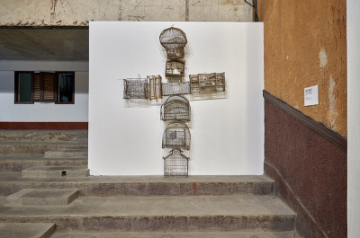 José Mesías - Ecce homo 2018-2020, Installation, Twelve found-cages, Variable dimensions. Photo: Nestor Kim