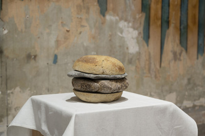 Zhanna Kadyrova - HAMBURGER (PARIS) 2022, found river stone, variable dimensions. Photo: Oak Taylor-Smith