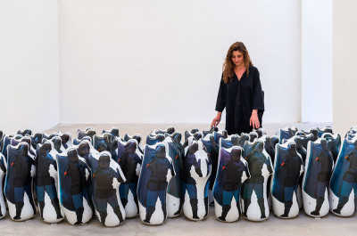 Thus, Michelangelo Pistoletto proposes, in the itinerary of the exhibition, his historical work of 1978 “Fame, Amore, Arte” (Hunger, Love, Art); the artist invites visitors to lend their “special” chair – the one they feel and participate in the creation of Terzo Paradiso (Third Paradise). The invitation to dialogue is reiterated by the artist with “Mar Mediterraneo”. Tensions are also discussed in the artwork “Canto V” by Arcangelo Sassolino. Long the way, we also discover works related to concrete political situations, both past and present: “Louis Vuitton voyage avec Karl Marx” by Carlos Garaicoa, or “El beso de cristal” by Reynier Leyva Novo. Lucy+Jorge Orta works have a political character. Thr exhibition welcomes four artists currently on display at the 58th International Art Exhibition – Venice Biennale: Shilpa Gupta, Zhanna Kadyrova and Sun Yuan & Peng Yu. Jannis Kounellis and Kader Attia show the strength of a profound integrity. Ai Weiwei invites us to radical gestures as well. Nari Ward conceived a work specifically for the exhibition, thinking of today's France. The ways of investigating the power manifested in the works of the invited artists are very diverse. Another special project is “Inside Out” by JR: a mosaic of faces and stories encapsulating the living power embodied in each person. On the JR’s wall, many of the people who have animated Les Moulins’ nowadays history with their energy and their ideas are on display. Among all these faces, there are also those of the French staff of the gallery.