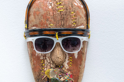 Pascale Marthine Tayou - Masque Rejeté, 2018. Wooden masks, mixed media 28 x 20 x 14 cm. Photo: Oak Taylor-Smith