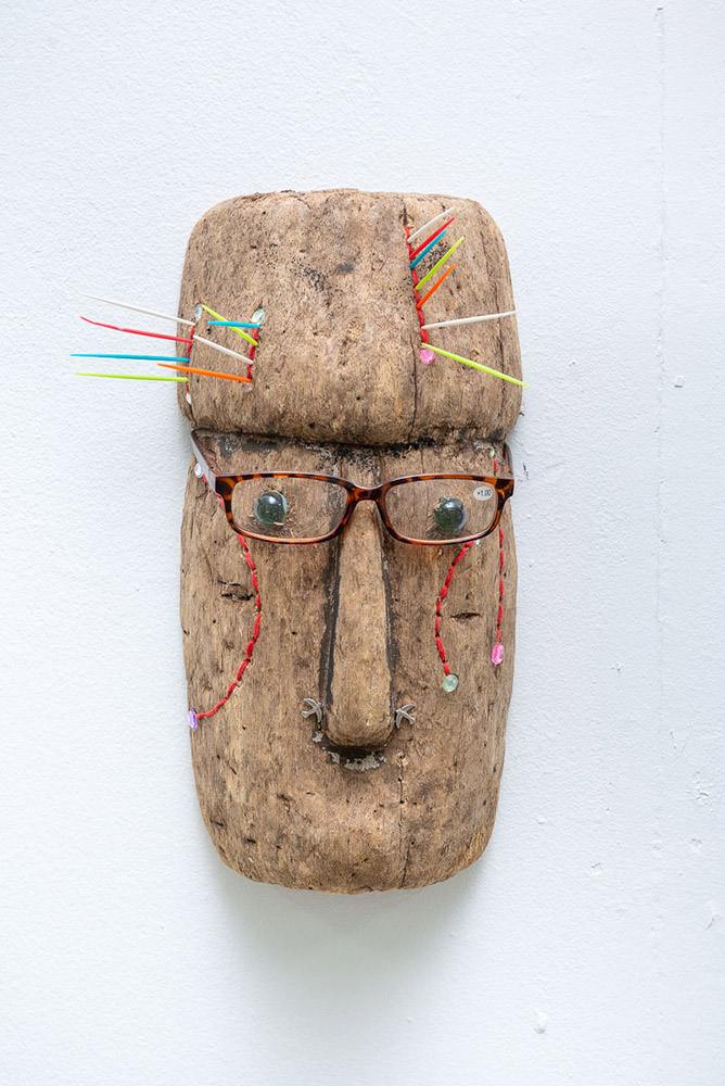 Pascale Marthine Tayou - Masque Rejeté, 2018. Wooden masks, mixed media 41 x 17 x 15 cm. Photo: Oak Taylor-Smith