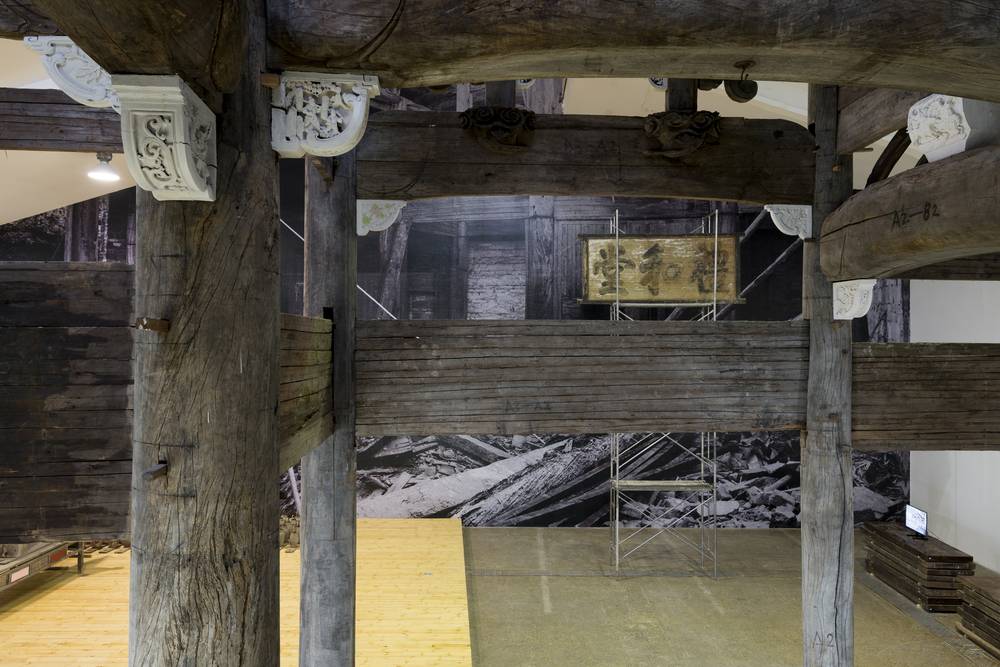 Ai Weiwei - Wang Family Ancestral Hall, 2015, Over 1,300 pieces of various wooden building elements from late Ming Dynasty (1368-1644) with original carvings and painted replacements, 2100 x 1680 x 942 cm. Photo Oak Taylor-Smith
