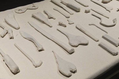 Shilpa Gupta - There is No Explosive in This - Objects confiscated at the Pierre Elliot Trudeau International Airport, Montreal, 2011, 110 x 462 x 78 cm. Photo Oak Taylor-Smith