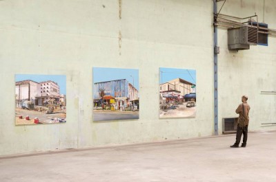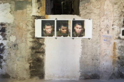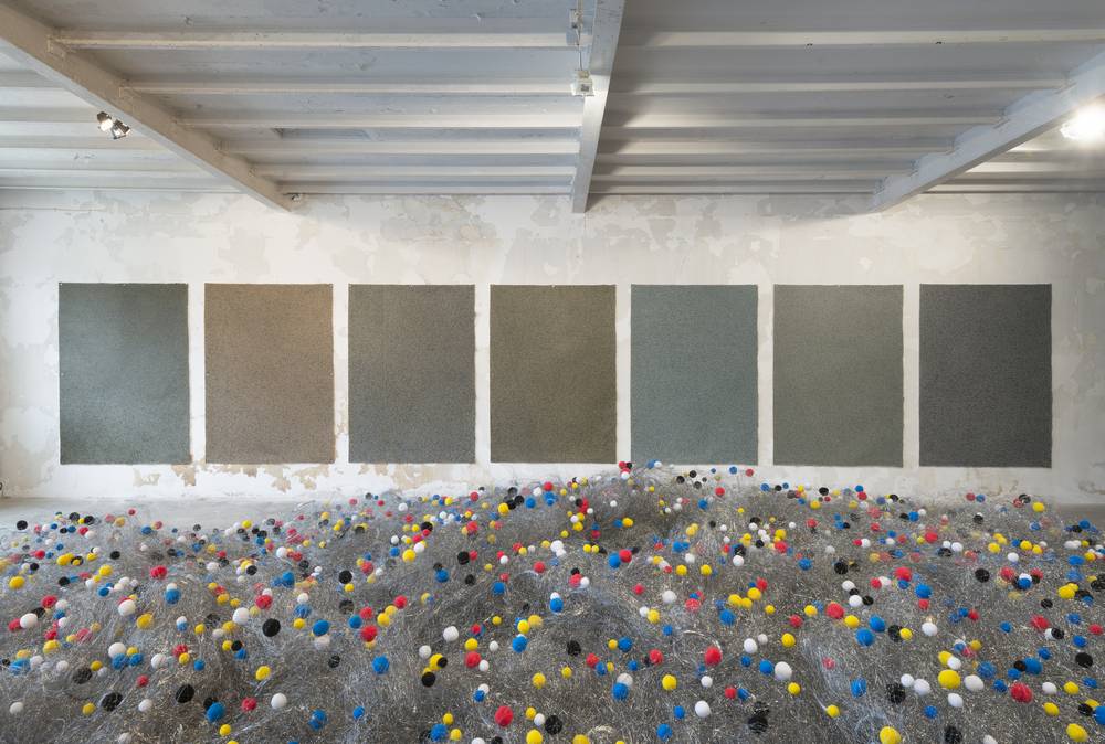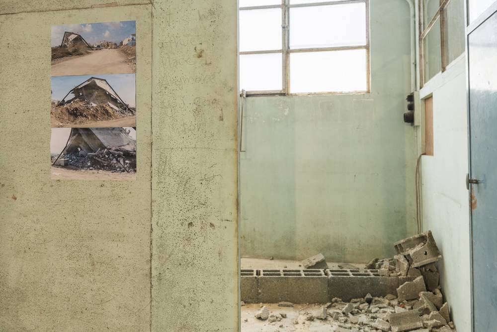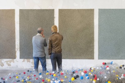 SPHÈRES 2014 - Zhanna Kadyrova, 'Fracture WS1 - Shot BM1''Fracture WS1' 2010, Carreaux de porcelaine, enduit, colle, placoplâtre, 30 x 30 cm; 'Shot BM1' 2010, Carreaux de céramique, plâtre de Paris, bois, colle, 64 x 64 cm; Exhibition view Sphères 7, GALLERIA CONTINUA, Les Moulins, France, 2014; Courtesy Izolyatsia. Platform for Cultural Initiatives