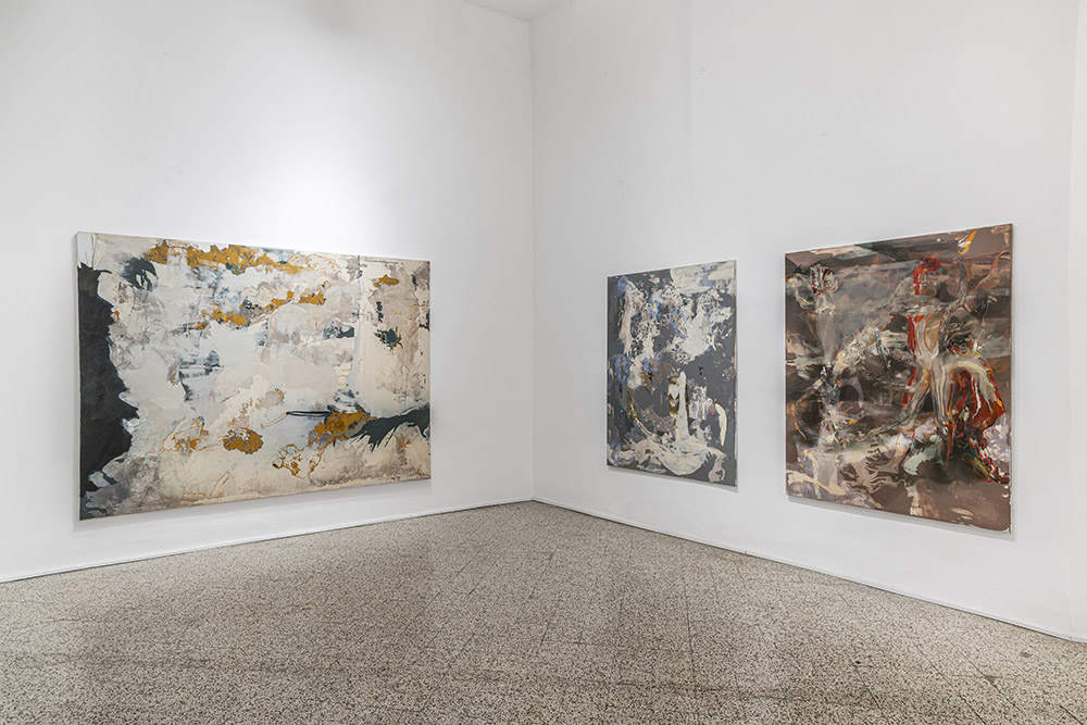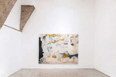 Marta Spagnoli’s first exhibition at Galleria Continua San Gimignano is built around a series of works, canvases of various sizes, drawings on paper and variously supported mixed media that are the result of research developed over the last two years. Whiteout, referring to a polar meteorological condition in which intense solar lighting changes the perception of space, horizon and time, manifests in the white spaces in Spagnoli’s work, providing an a-temporality and a sense of mythological suspension. Each image is a map reconstructed according to a mental marker, where the white flow is anything but immutable, as if something has happened continuously beneath it. Surrounding this, a reworking of fragments and shapes of organic origin and mythological forms establishes itself, causing all kinds of natural and otherworldly figures to appear suspended, intertwined or weaved rhythmically into what appears as a sort of spotted livery or flora. A livery that acts almost as a garment that provokes a metamorphosis, bringing the wild animal back to the human being by providing a flamboyant, camouflage uniform that demonstrates the individual’s identities and habits.