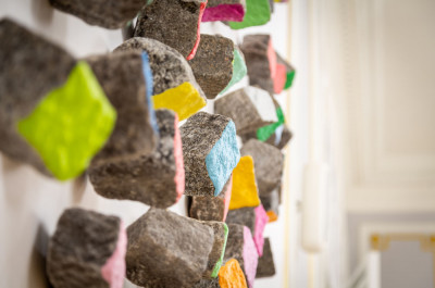 Pascale Marthine Tayou - Big Colorful Stones 2019, Granite setts, paint, About 2 m diameter. Ph. by The St. Regis Rome.