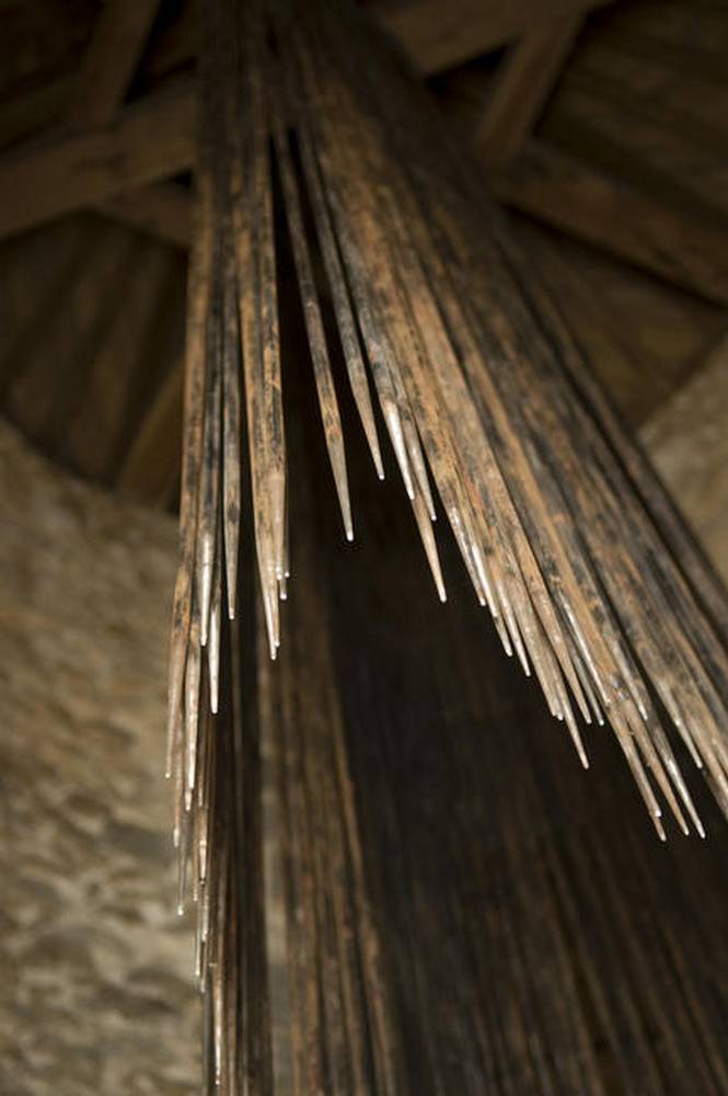 Shilpa Gupta - Untitled, 2010, 185 metal rods and hooks, 467 x 142 x 66 cm, Photo Didier Barroso