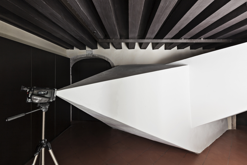 “Invisible Forms” was presented at Galleria Continua / Les Moulins in 2012 and consisted of many concrete forms seemingly breaking out of the lens of a security camera, taking the shape of the path of the camera’s gaze. At the gallery’s Les Moulins location the sculptures invaded the former factories spaces, adding new angles and dimensions to them and influencing the viewer’s movement and interaction with their surroundings.