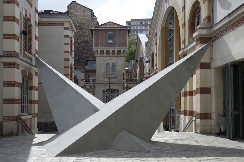 In 2015 the work was part of the 25-year celebration of Galleria Continua for the Follia Continua! – Les 25 ans de GALLERIA CONTINUA exhibition at the Le CENTQUATRE-PARIS. It was a celebratory exhibition of 25 years of the gallery and saw the works of the gallery’s artists displayed in the Le Centquatre-Paris, a place open to all citizens that has collaborated with Galleria Continua for some time. “Invisible Forms” is representative of a non-material and invisible phenomena – shades and rays of light produced by electric appliances and video cameras. The concrete forms literally announce their presence and occupy space, forcing the viewer to interact with the reality and the notion of it. In this exhibition, it was positioned externally strongly taking up the space of a courtyard and replicating the “gaze” of such security cameras. The exhibition integrated itself with themes that invited thought on important social and environmental arguments facing society.