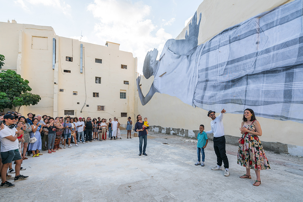 In April 2019, for the 13th Havana Biennial, JR was invited by Galleria Continua to paste on the outside wall of the gallery ARTE CONTINUA. He sets as protagonist of a new GIANTS’ work Alain, a little boy who lives in Havana’s Chinatown and plays every day at the foot of the former cinema Águila de Oro, the building that houses Galleria Continua.